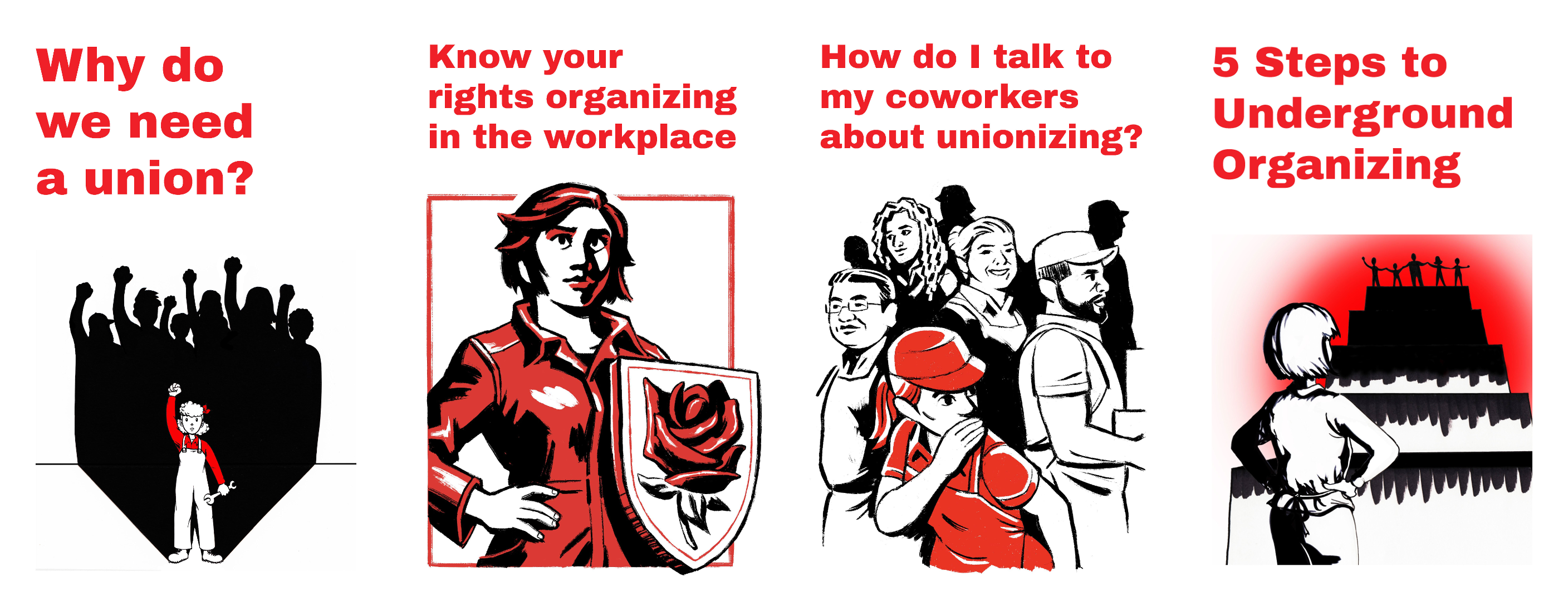 If you’re thinking of organizing your workplace, you might have to take the first step on your own. We know it can be daunting to have that first 1:1 conversation, to openly oppose your boss for others to see, or to begin the work of mapping out your workplace. But remember you’re not alone – you’re not fighting merely for your own benefit, but for the collective empowerment of every worker at your job. Every worker has something they’ll fight the boss for, and if you help each of them realize it, they’ll fight for the union side by side with you.
